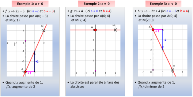 La manière dont se comporte une fonction affine dépend de son coefficient directeur