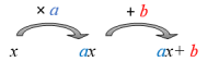 Pour calculer l'image du nombre \( x\), on multiplie \(x\) par \(\color{blue}a\) puis on ajoute \(\color{red}b\) .